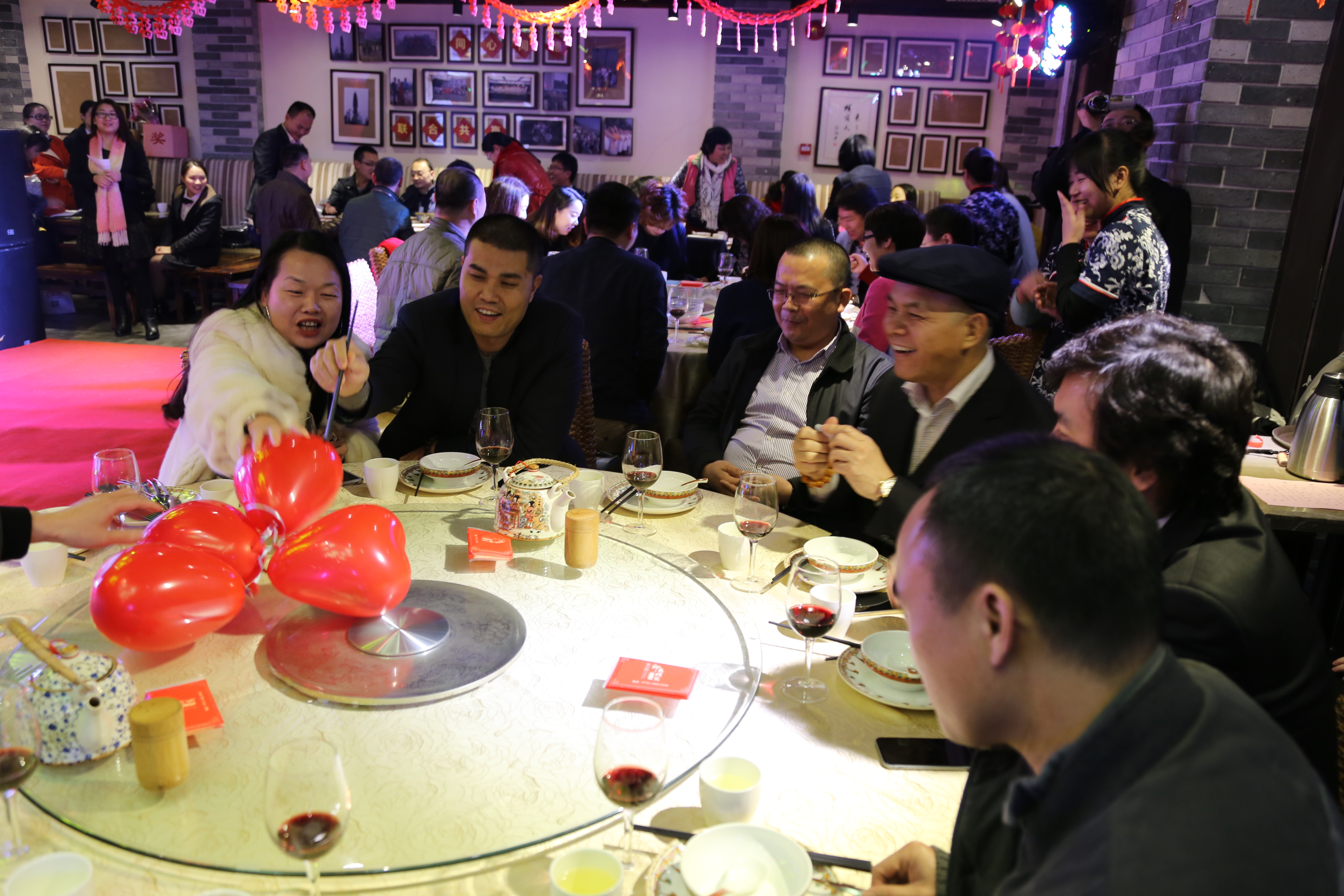 开场的小游戏让现场气氛一下子进入高潮。摆在大家桌面上每一束红心气球都有面额不等的现金,热场游戏就看中联银人谁手最快谁开年运气最好!