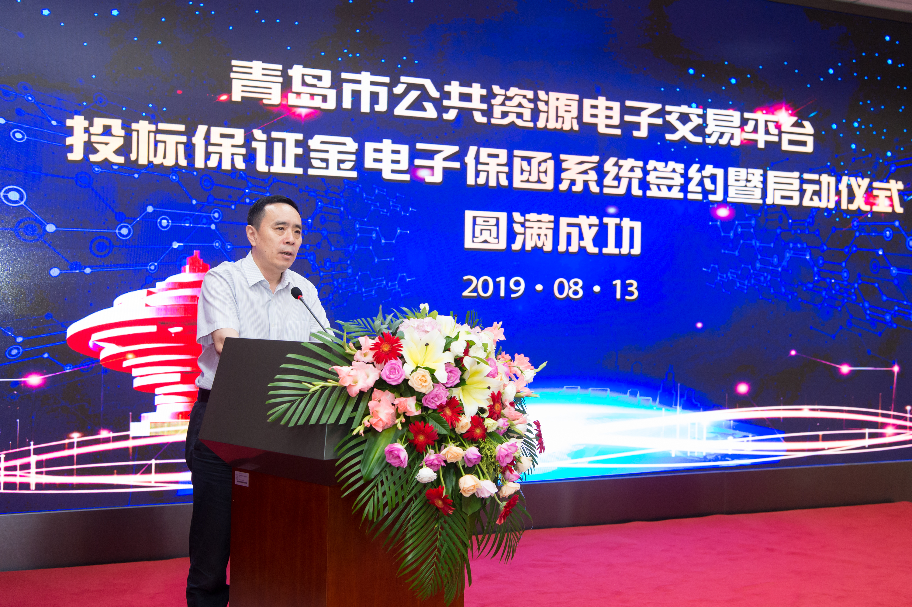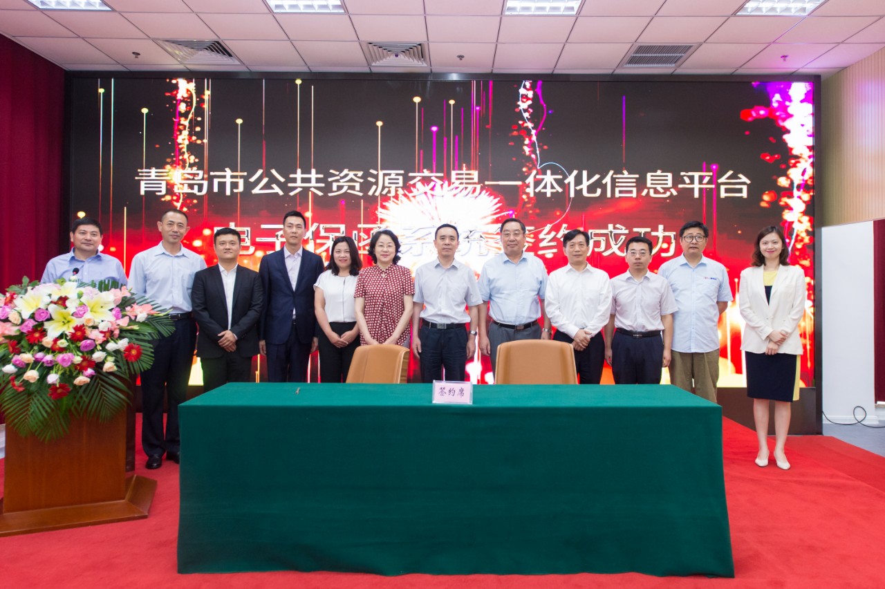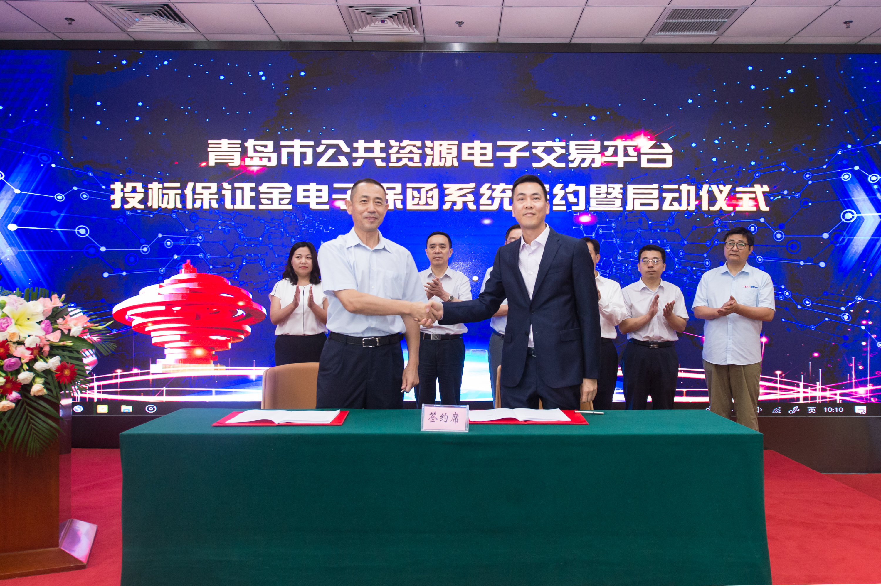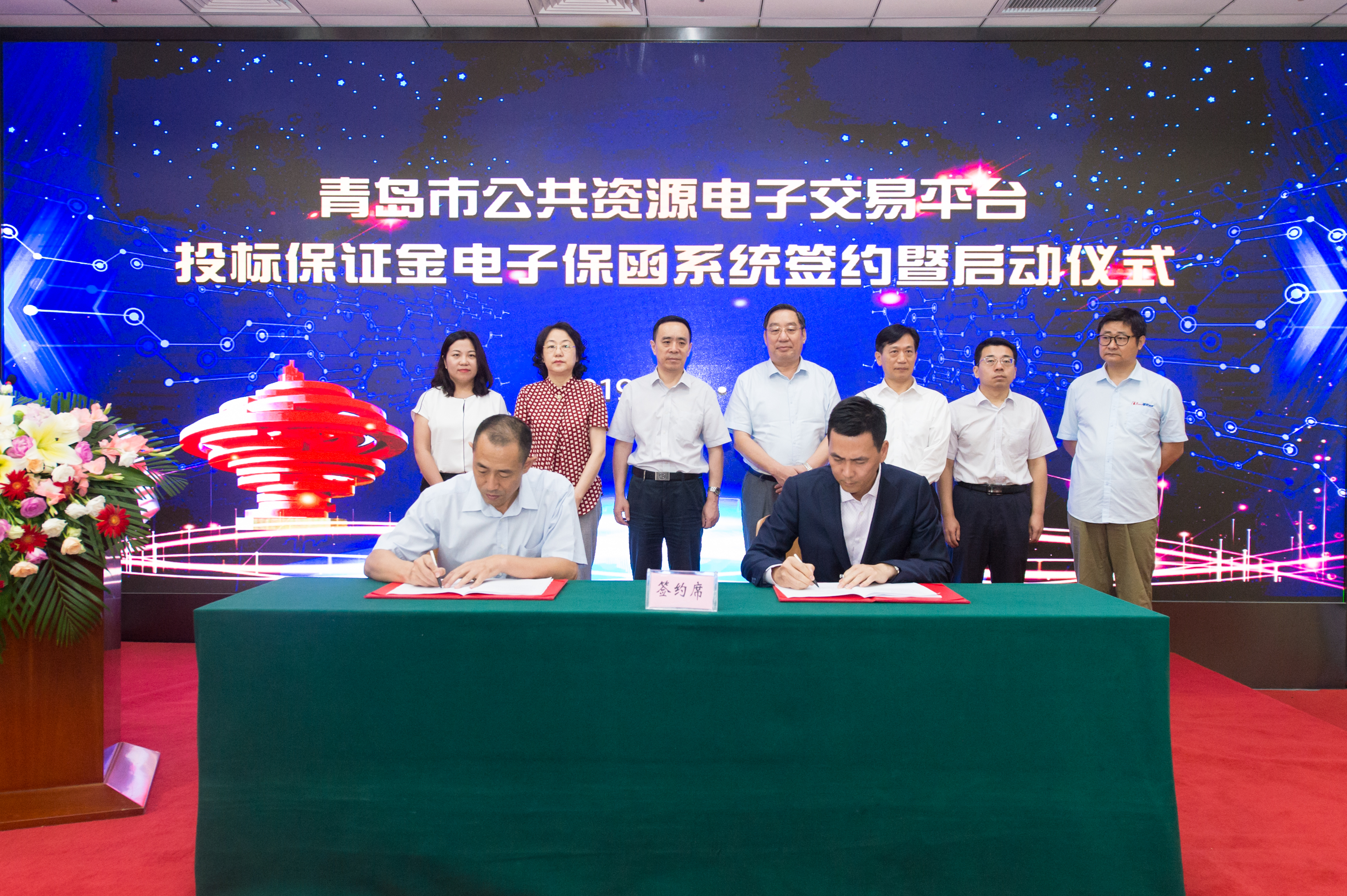 2019年8月13日,为积极贯彻落实国务院办公厅《关于深化公共资源交易平台整合共享的指导意见》(国办函〔2019〕41号)精神,切实降低市场主体交易成本、减轻企业负担、提高工作效率,完善公共资源交易平台服务功能,青岛市公共资源电子交易平台投标保证金电子保函系统于启动上线。青岛市行政审批服务局、青岛农商银行、招商银行青岛分行等单位相关负责同志出席合作签约和上线启动仪式。