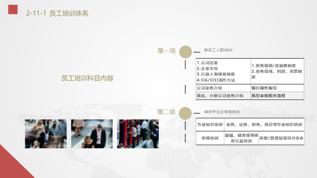 公司企业文化及理念,各项规章制度,公司业务体系,业务操作流程及各项工作指引。