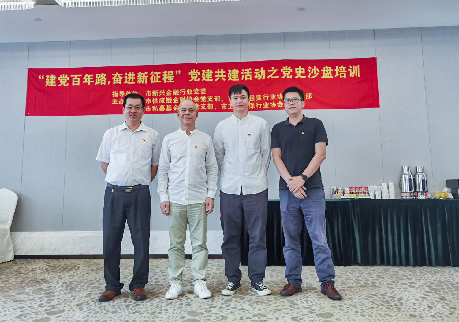2021年5月8日下午,中银联党支部受邀参加深圳市供应链金融协会党支部、深圳市融资租赁行业协会党支部、深圳市私募基金商会党支部以及深圳市工程担保行业协会党支部联合举办《峥嵘党史沙盘》党建工作专题培训会议。