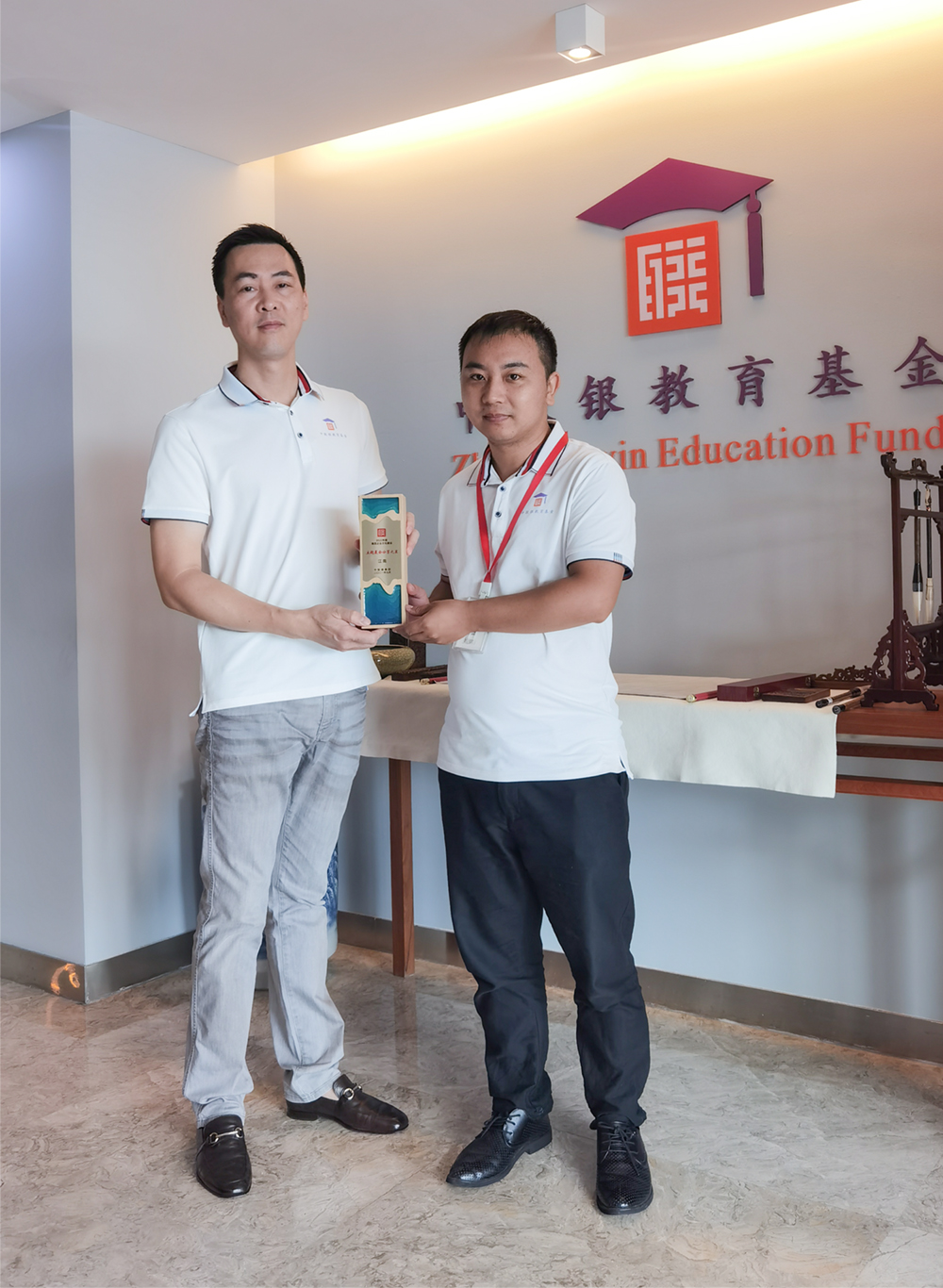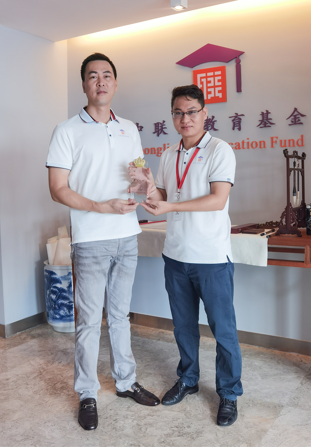 在晨会的间隙,集团董事长陈文晖先生分别为他们颁发了奖杯,以此鼓励。