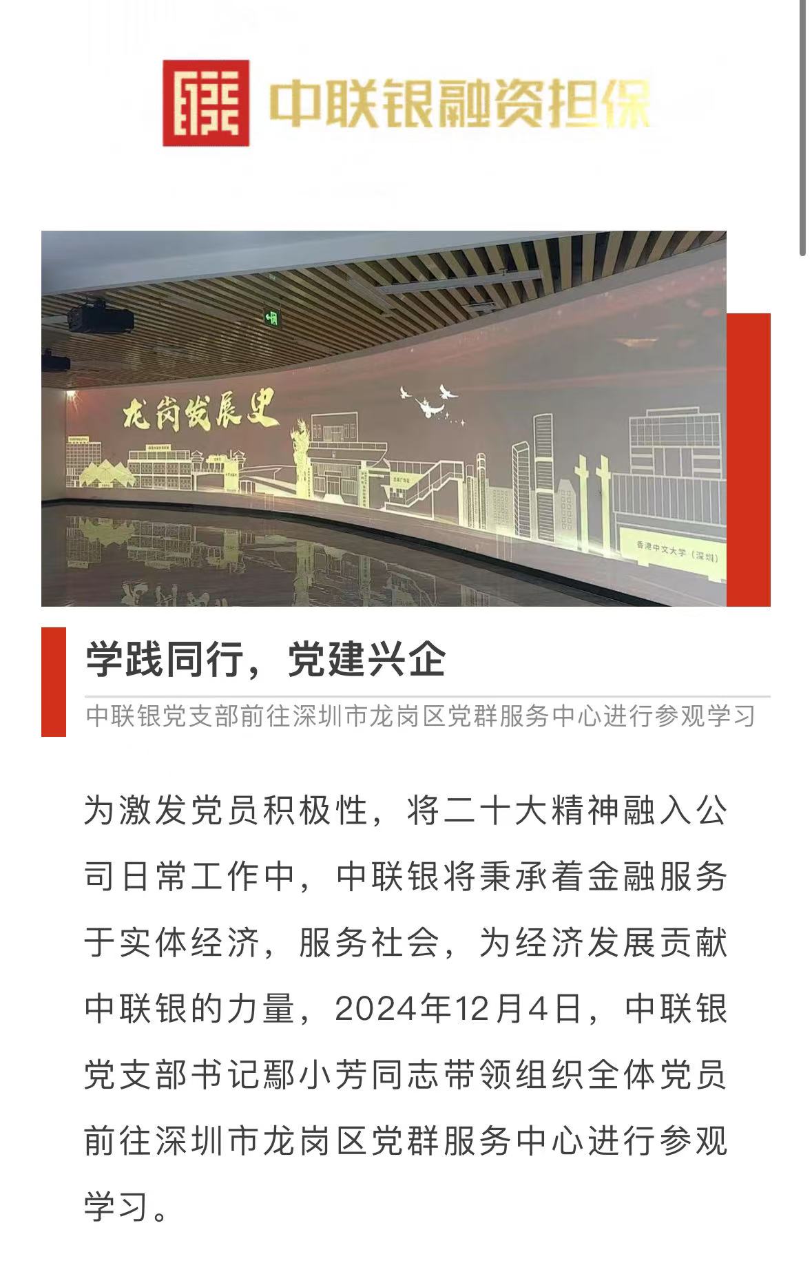 学践同行,党建兴企!中联银党支部前往深圳市龙岗区党群服务中心进行参观学习