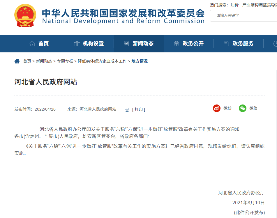 4月28日,发改委发布专题“河北省人民政府办公厅印发关于服务“六稳”“六保”进一步做好“放管服”改革有关工作实施方案的通知”,其中第二条第二点: